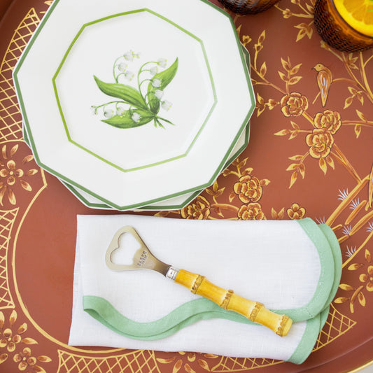 SCALLOPED LINEN SQUARE, GREEN TRIM (SET OF 4)