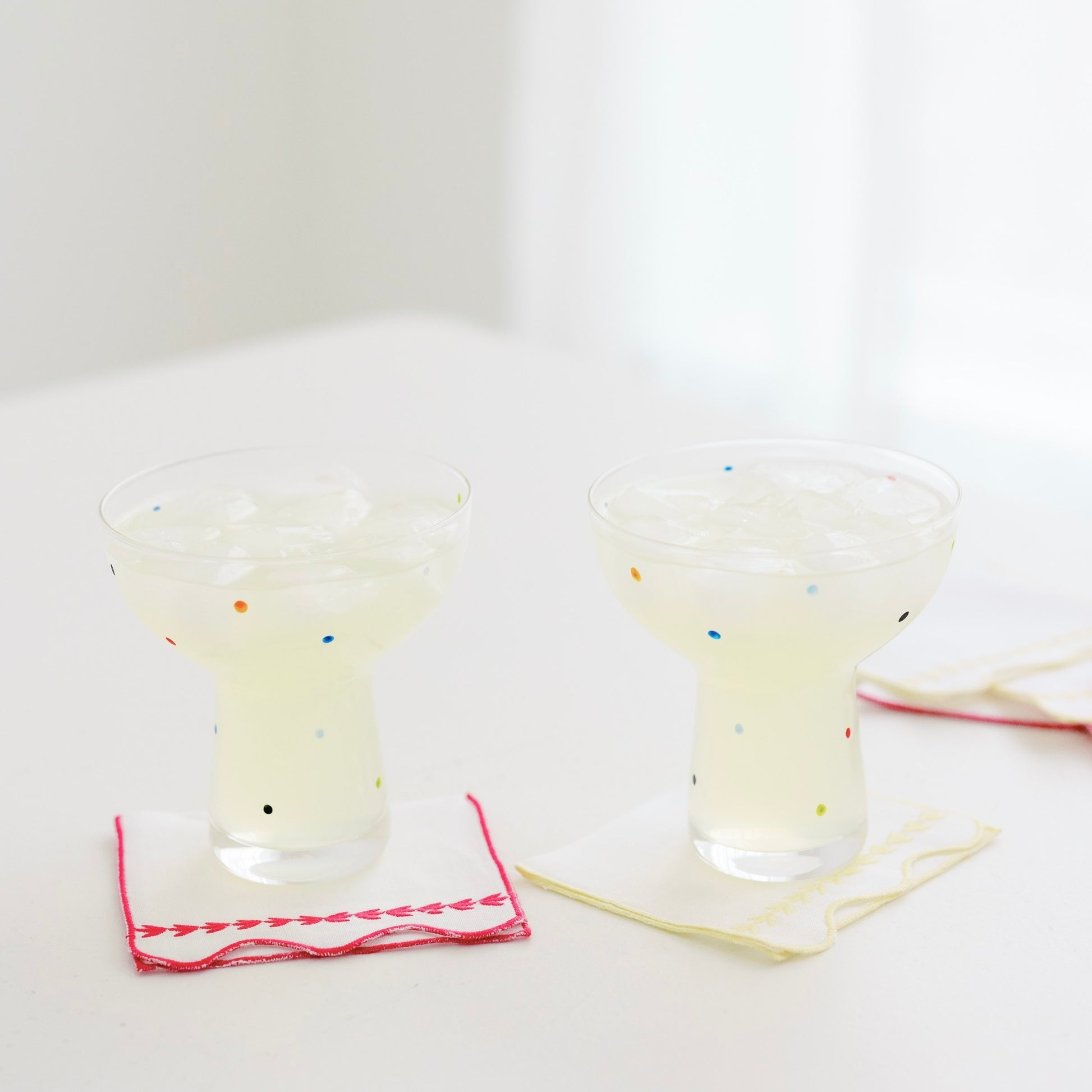 These simple white cocktail napkins are made special with a delicate scallop edge & detailed embroidery.