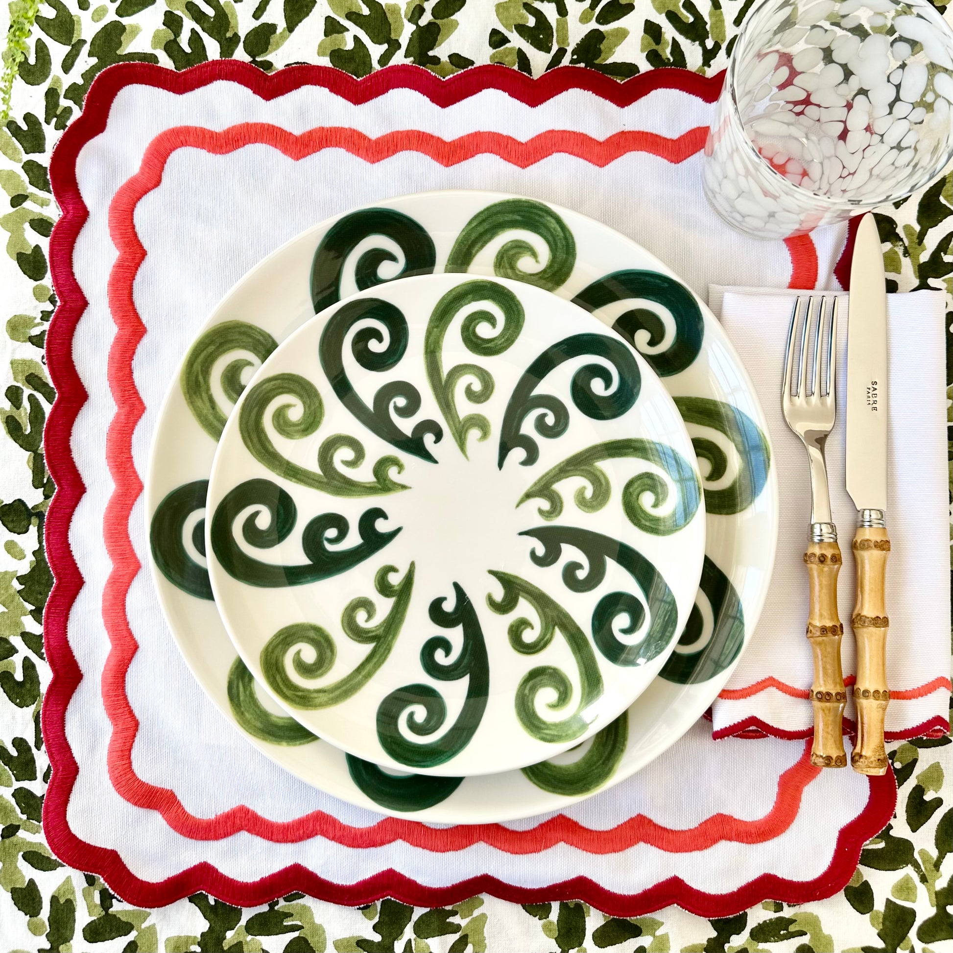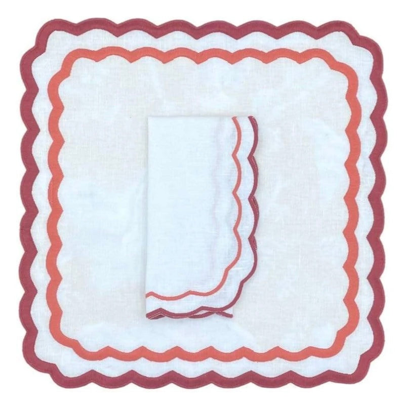 Made to mix & match, these napkins are of incredible quality and craftsmanship. The Goldie will add such fun and flair to your table. Crafted from white dutch linen and trimmed in rouge, she’s a bombshell.