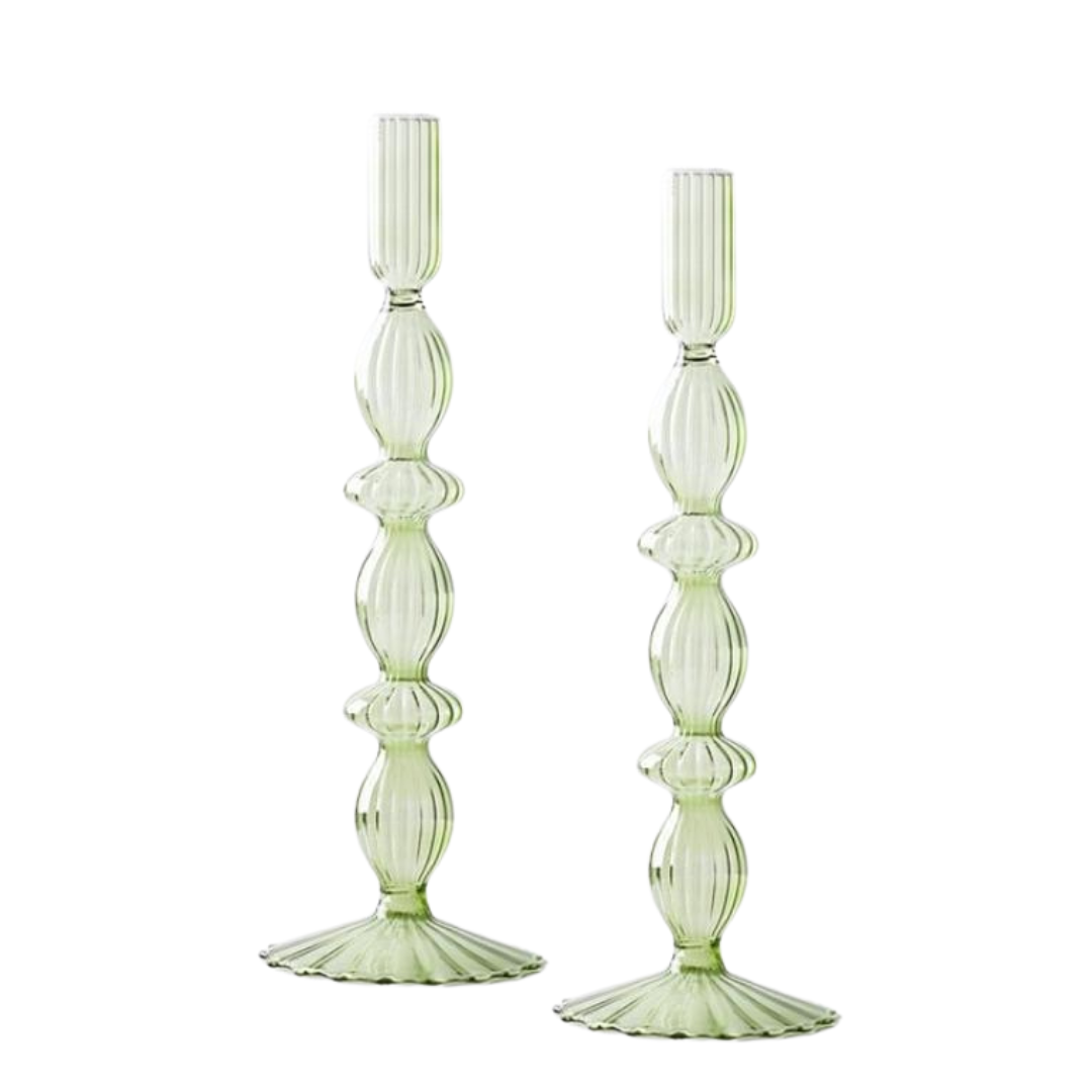 GREEN GLASS CANDLE HOLDER (SET OF TWO)