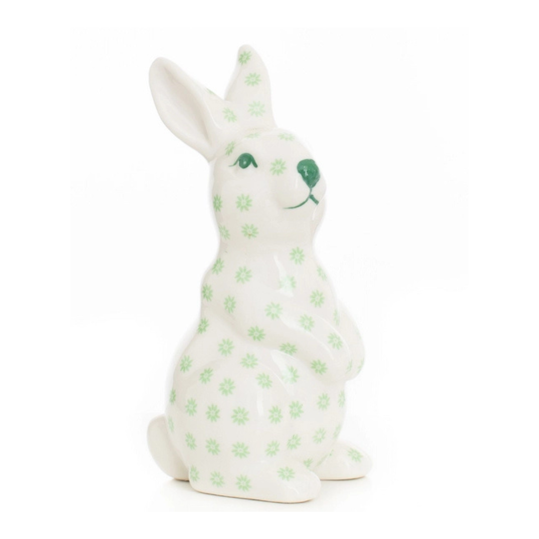 Add a whimsical touch to your Easter décor this season with this charming green and white porcelain bunny.