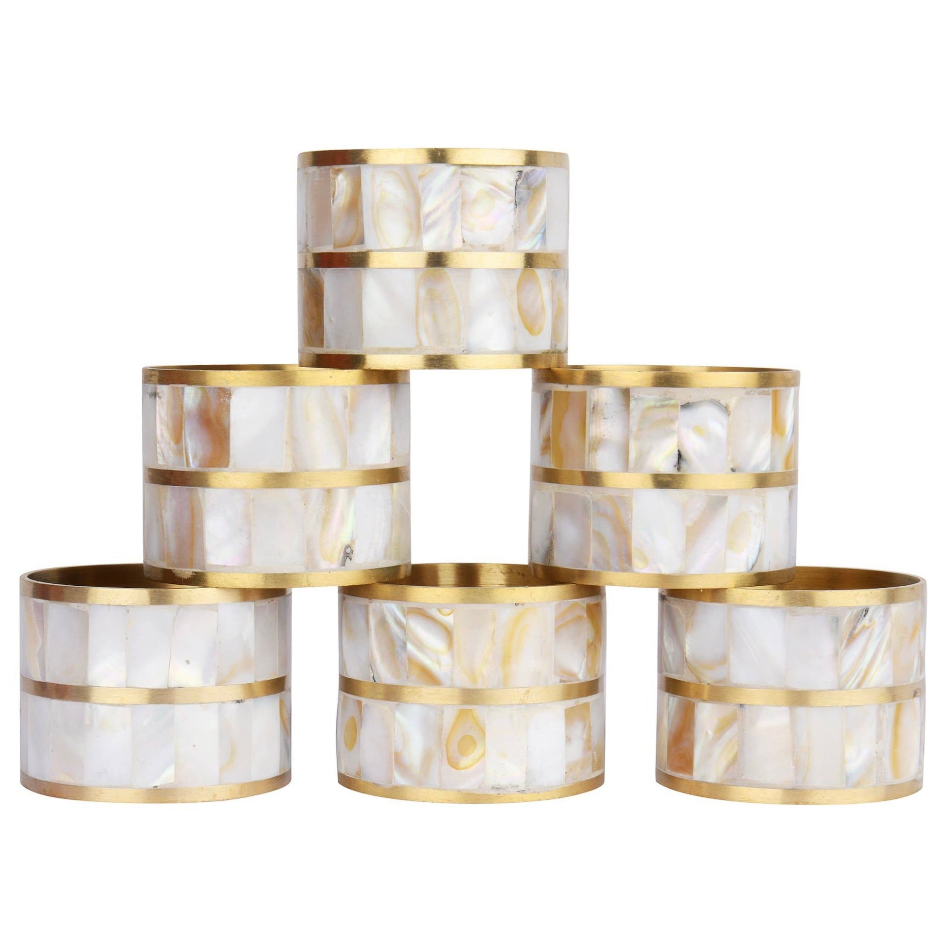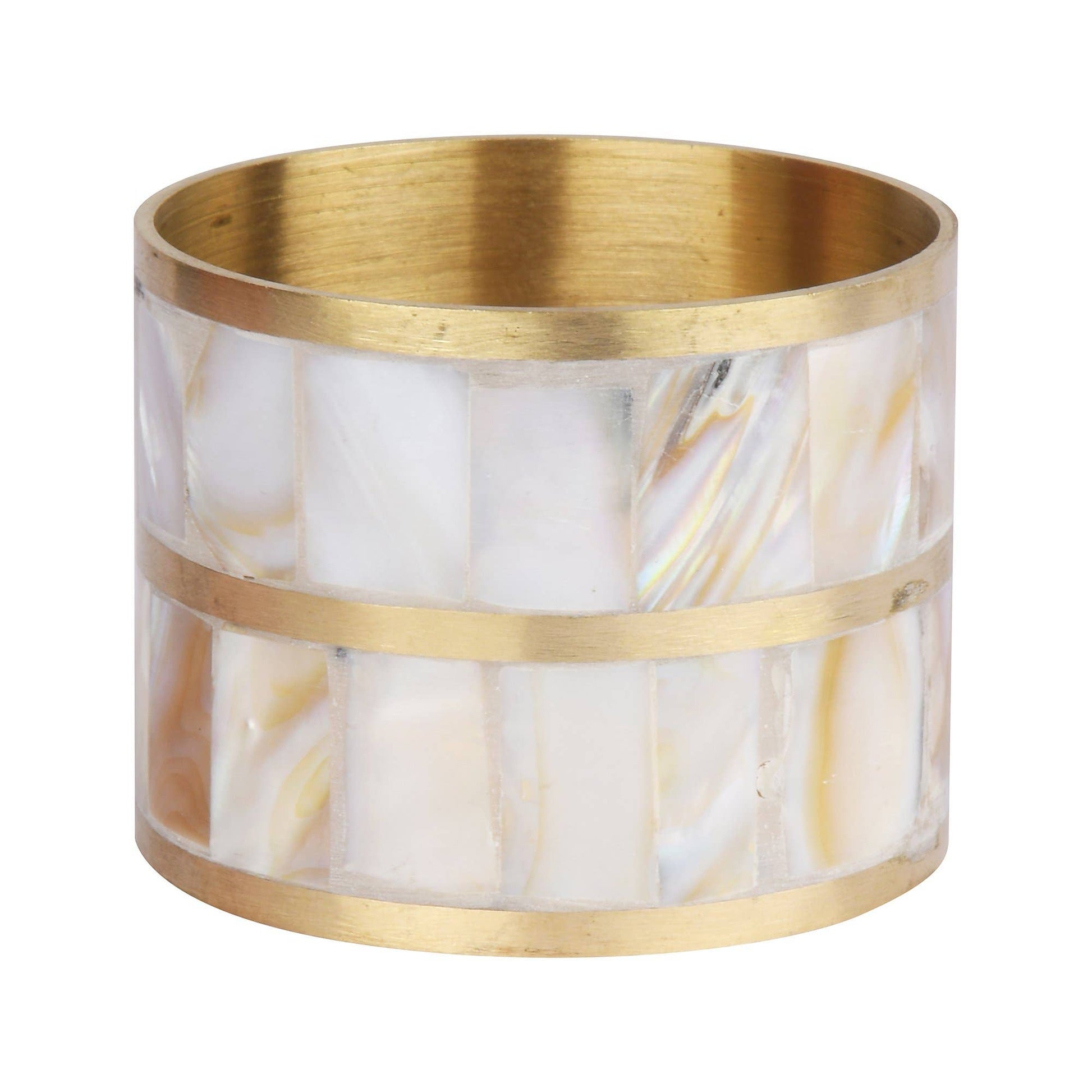 Mother of pearl paired with brass is a winning combination. Handcrafted from ethically sourced brass ring and mother of pearl chips, these napkin rings will fit right in on the most elevated of tables as well as the more laid back.