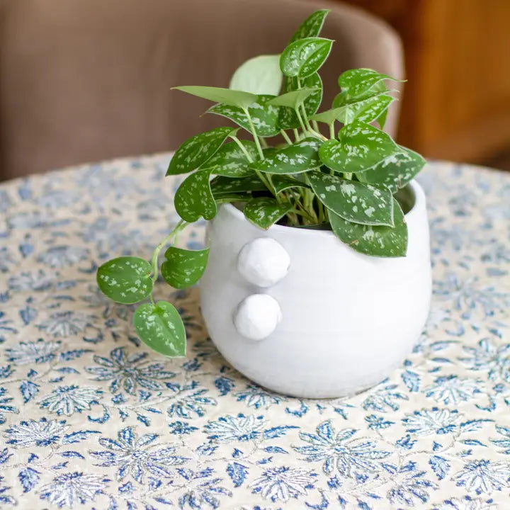 Beautifully block-printed in India, this timeless pattern adapts seamlessly to any season or occasion.