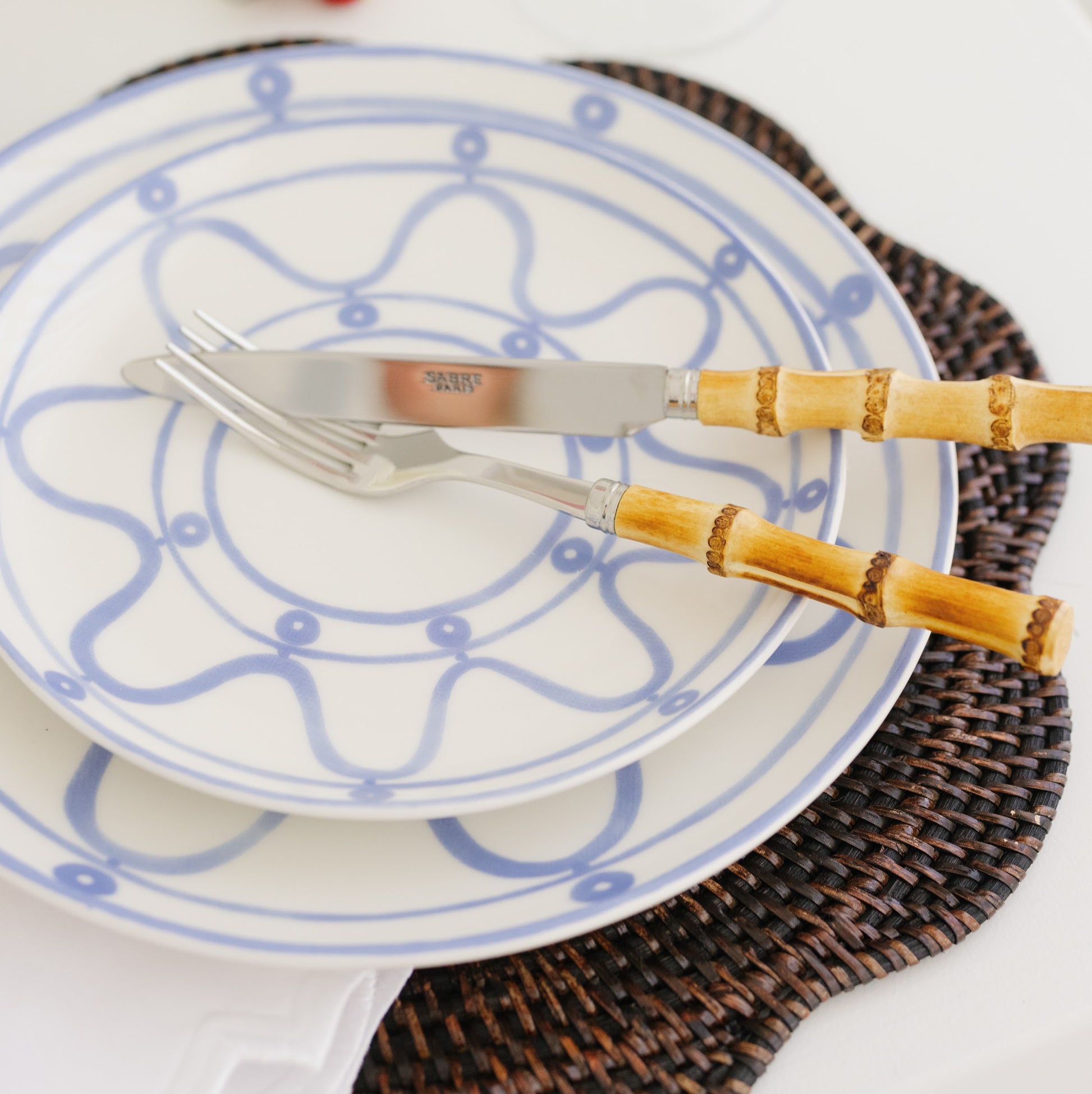 A twist on a classic rattan placemat, this style is a go-to for us. Each piece adds fantastic texture to your table and is hand woven by skilled artisans, showcasing their traditional craft.